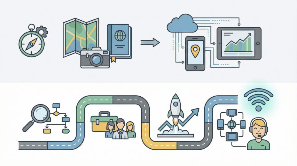 本記事は、まさにそのような課題を抱える皆様のための「観光DXの地図」となることを目指しています。専門用語を極力避け、観光DXがなぜ今必要なのかという根本的な理由から、明日からでも始められる具体的な第一歩、そしてデータ活用や次世代技術を見据えた未来の展望までを、順を追って丁寧に解説します。